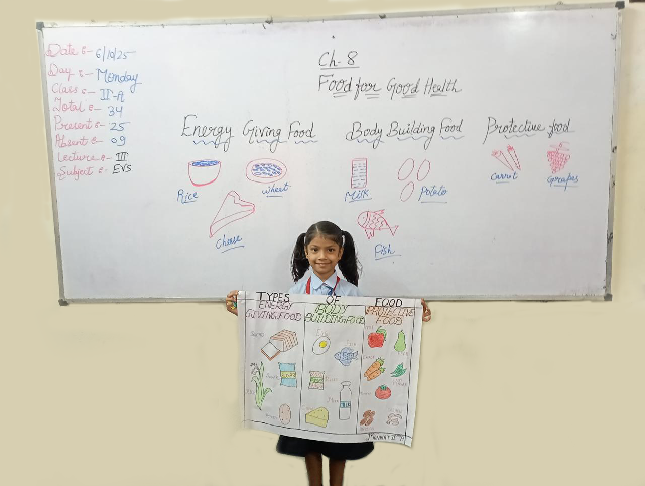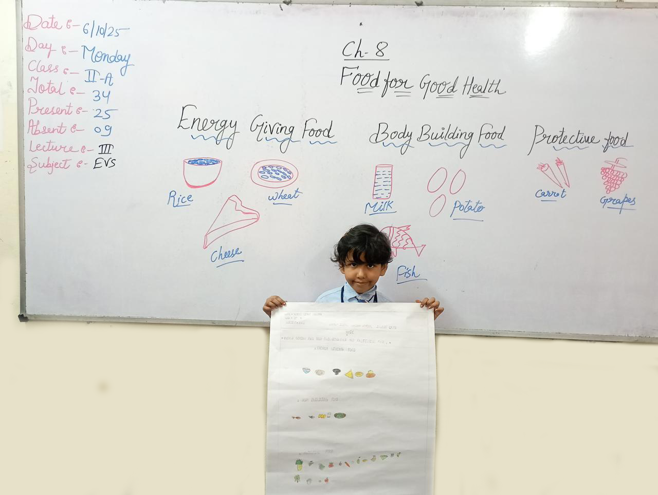 They beautifully illustrated the sources and importance of each nutrient, showing how every type of food helps our body grow, stay energetic, and remain healthy.